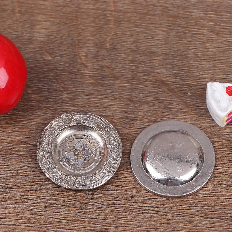 2 шт. 1/12 Миниатюрные аксессуары для кукольного домика мини металлический поднос для фруктов имитация мебельной пластины модель игрушки для ...