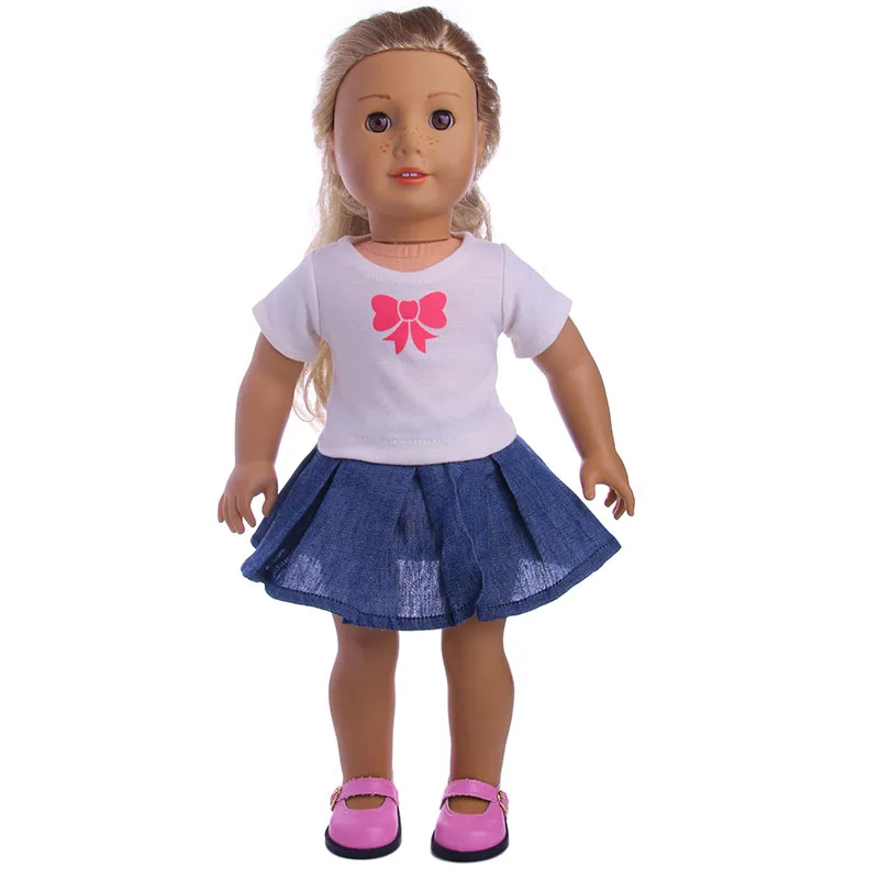 Белая футболка с принтом и бантом, костюм с юбкой на молнии, 18 дюймов, американский размер 43 см, Детская кукольная одежда, аксессуары, игрушки для девочек, поколение