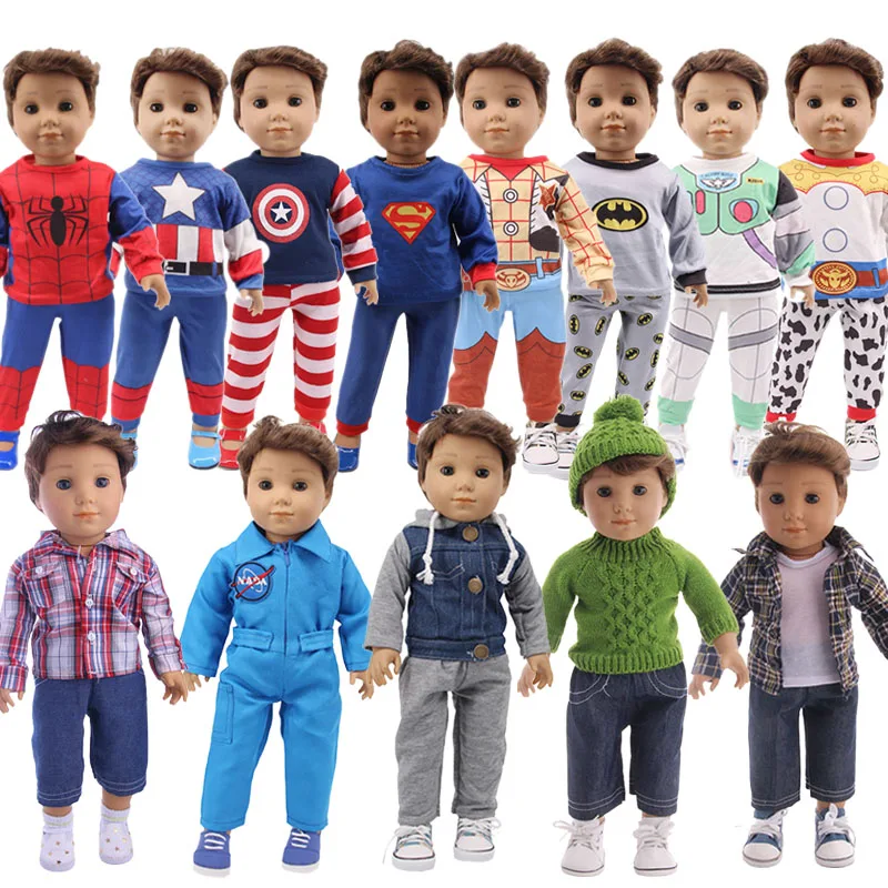 Одежда для мальчиков с изображением Капитана Америки, Человека-паука, пижама в стиле супергероя для 18 дюймов, американский размер 43 см, Детс...
