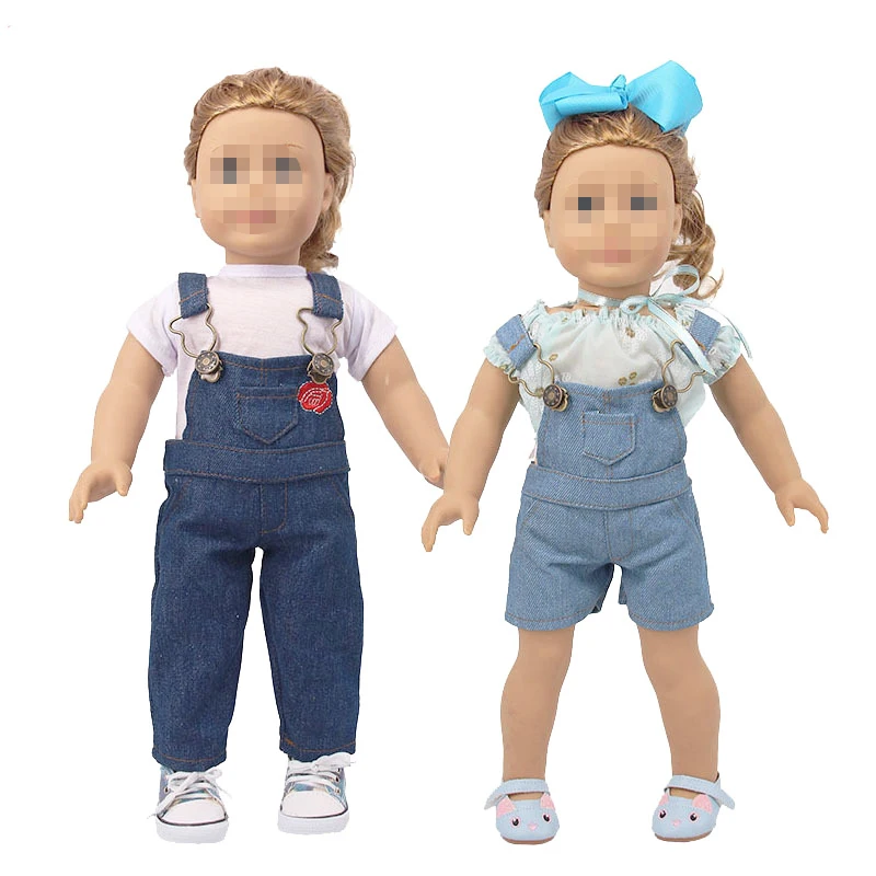 Кукольная одежда, 18 дюймов, кукольная одежда, высококачественный джинсовый комбинезон, футболка + комбинезон, костюм, подходит для детей 43 с...