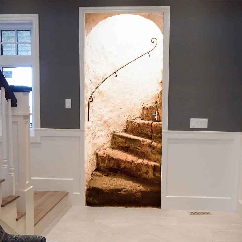 Новые наклейки на стену Настенная роспись 3D Шаг винтажная Лестница дверь стикер DIY самоклеющиеся водонепроницаемый плакат для печати Худож...