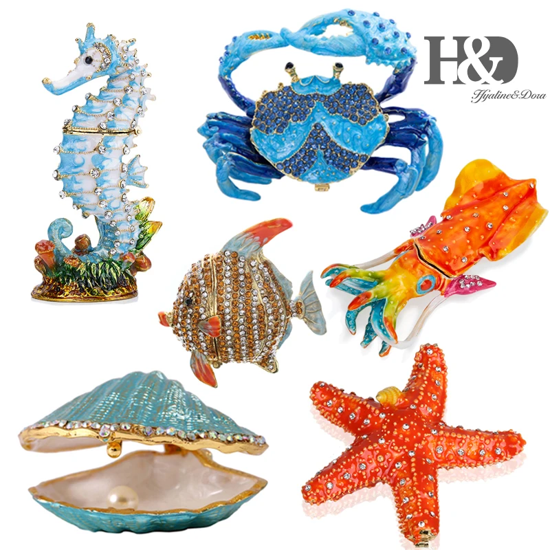 H & D ручная роспись Морской животных стиль брелок коробка эмалированная и шкатулка, отделанная камнями на шарнирах ювелирные изделия Коллек...