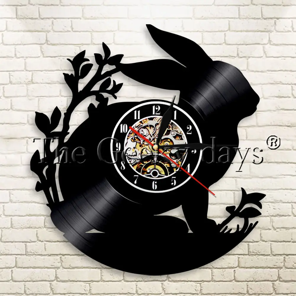 1 шт. прекрасный кролик Виниловая пластинка настенные часы животные современный дизайн LP ручной работы Винтаж с подсветкой домашний декор п...