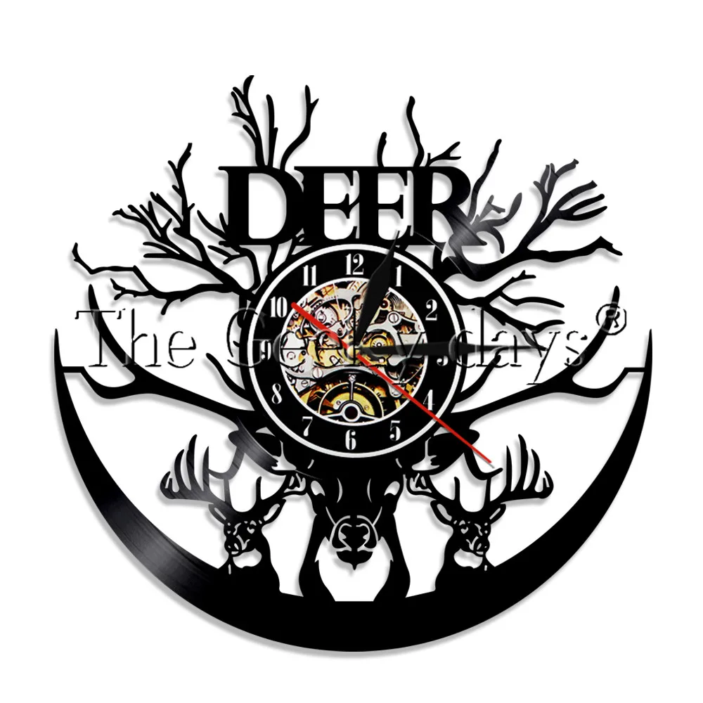 1 шт. олень виниловая запись настенные часы голова оленя украшение для дома с изображением животных рога охотничьи настенные часы силуэт вр...