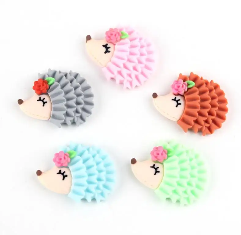 Кавайные плоские с оборота Ёжик из смолы, Мультяшные плоские с задней стороны Кабошоны, украшения, аксессуары, сделай сам, банты для волос