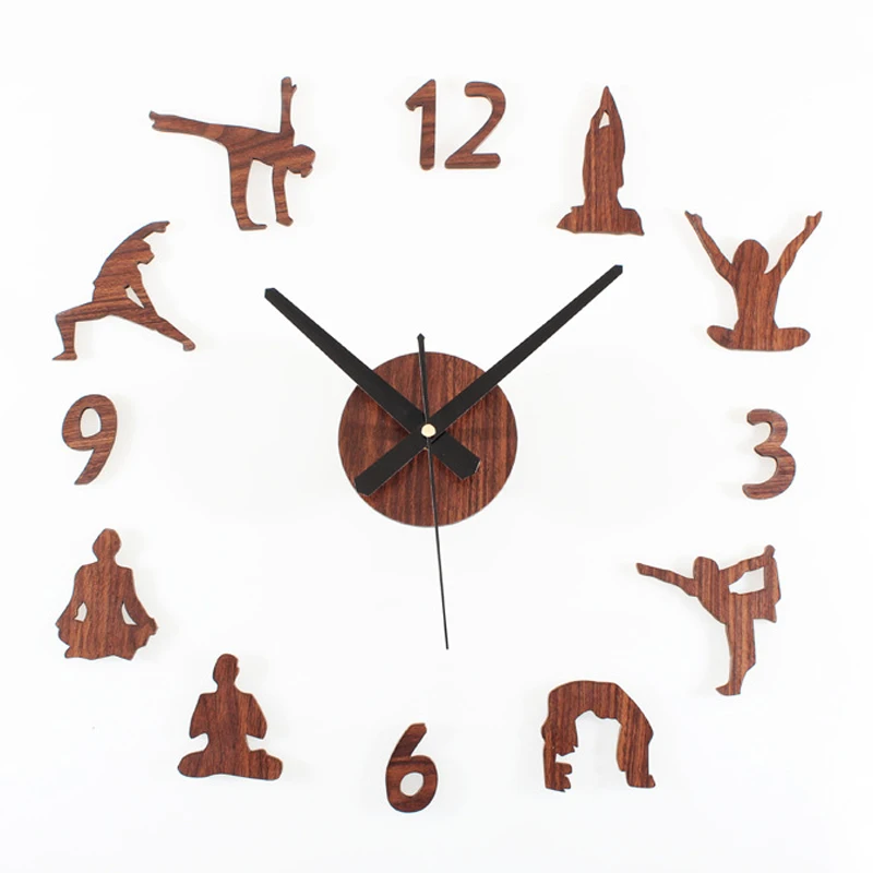 Новое поступление цвет древесины Йога Дизайн стикер eva 40 см-70 см настенные часы большой декоративные 3D DIY настенные часы большой