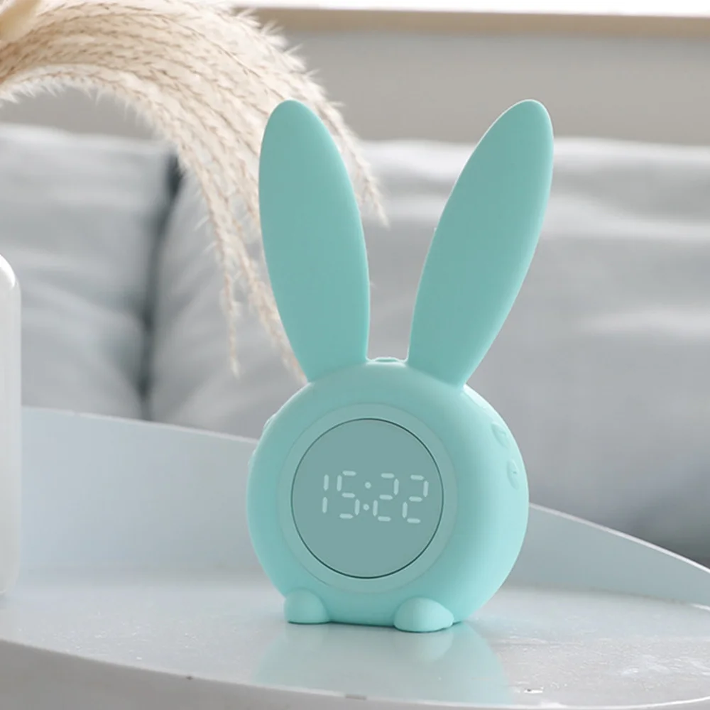 Светодиодный цифровой будильник с заячьими ушками, электронный светодиодный дисплей, Звуковое управление, кролик, настольные часы, ночная лампа для домашнего декора