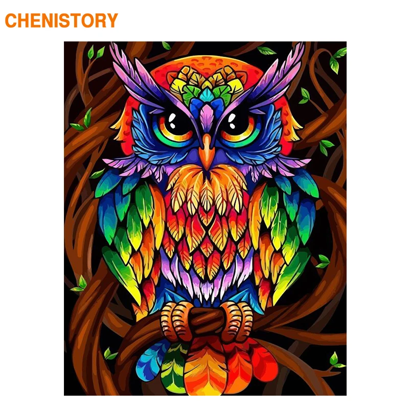 CHENISTORY 60x75 см рамка цветная Сова животные Diy живопись по номерам набор Современная Настенная картина акриловая краска по номерам для подарка