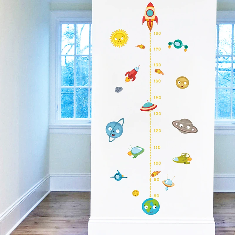 Солнечная система ракета измерения высоты наклейки на стену дети Nusery комнаты внешняя космическая наклейка с изображением неба Рост Диаграмма ПВХ росписи Декор стены
