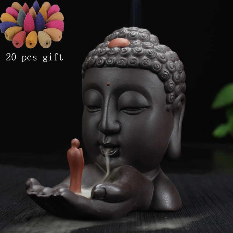 Курильница для благовоний горелка + 20 шт. пирамидки благовоний керамика Будда палку держатель кадило дым курильница для благовоний домашни...