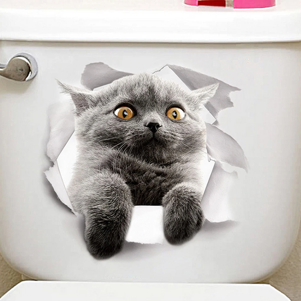 Горячие 3D милый котенок наклейка на крышку унитаза дети Спальня стены Deocration Кот стикер для холодильника