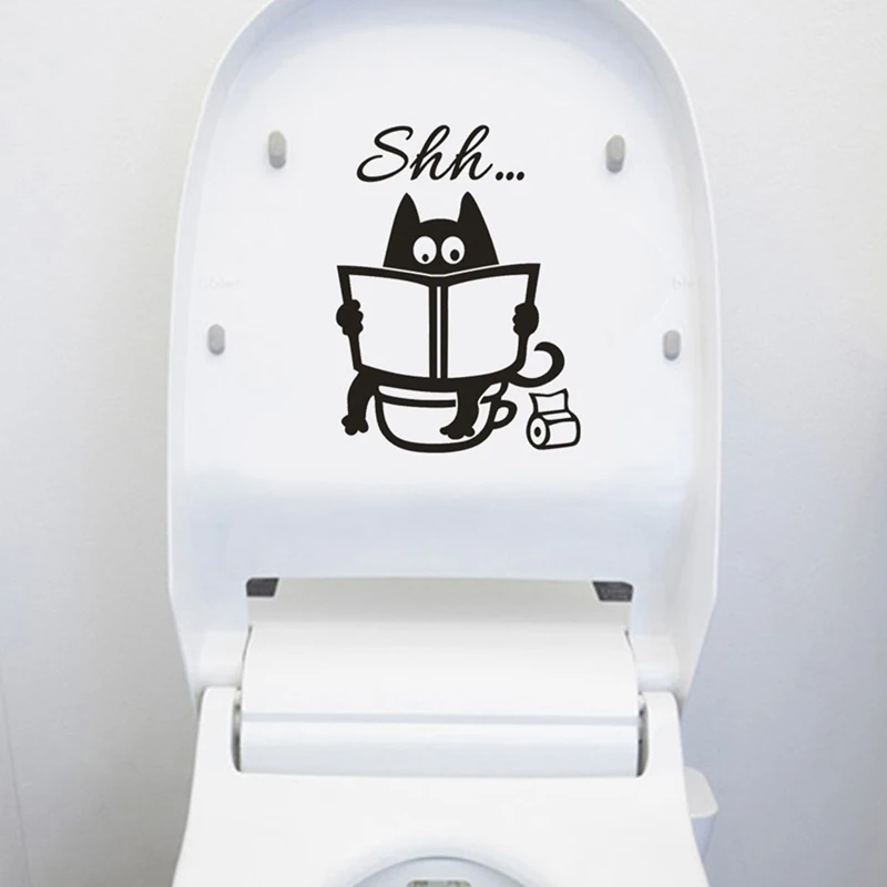 Милый Кот, книга для чтения, узор, туалет, наклейки на стену, уникальные аксессуары, съемная наклейка, Креативные украшения для стиральной комнаты