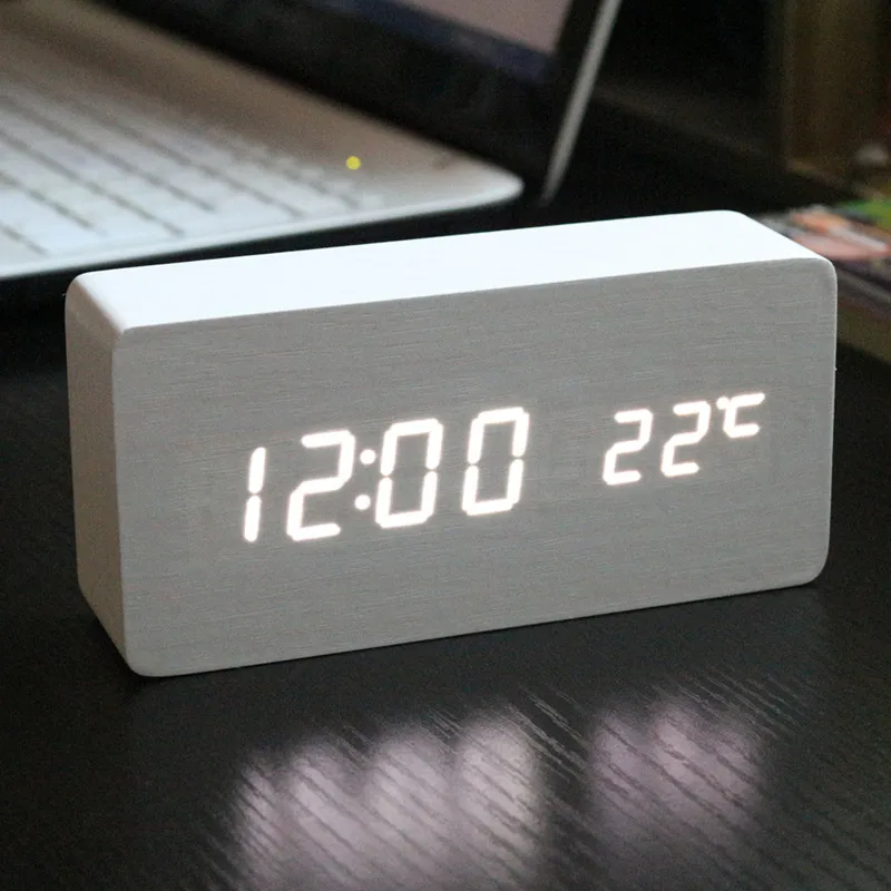 Новый Дизайн Электронный Relogio цифровой Desperatdor температурный акустический контроль датчик светодиодный Будильник Настольный Декор часов