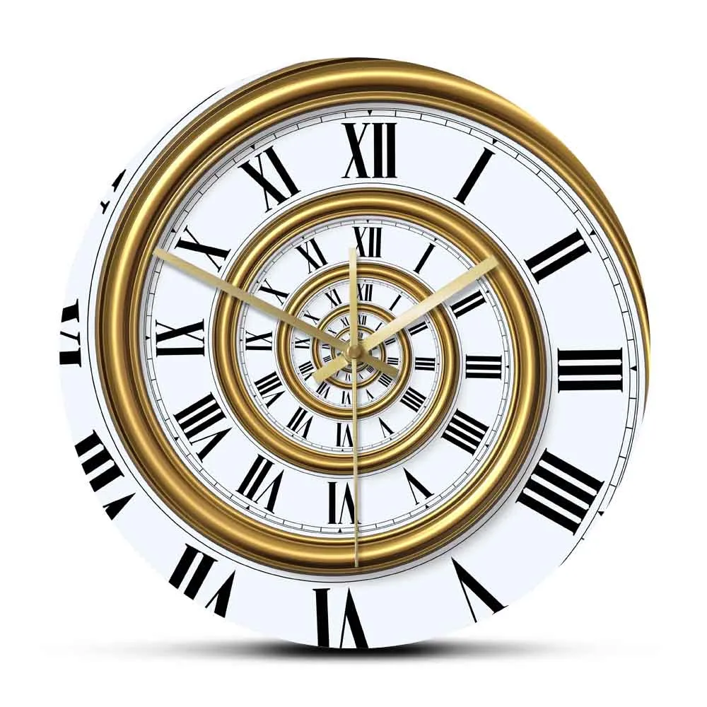 3D эффект абстракционизма римская спираль акриловые настенные часы винтажные гироидальные римские напечатанные цифры настенные Висячие часы
