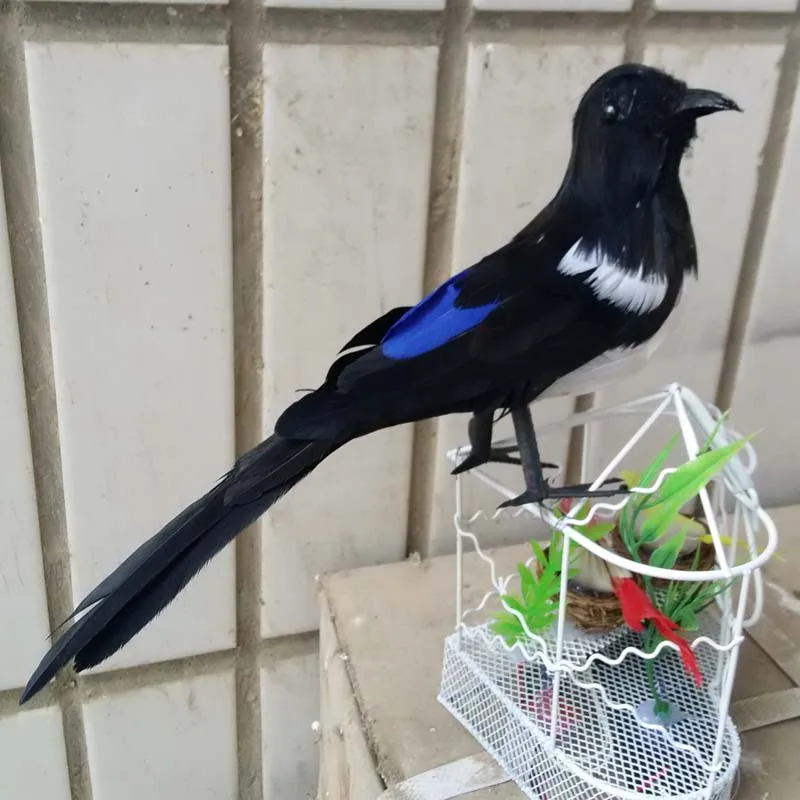 Около 22 см перья птицы черный воробьиный сорока модель игрушки, ремесло, украшения сада a1890