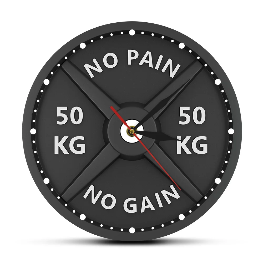 Без боли без усиления 50кг штанга современные акриловые настенные часы с принтом гантели для тяжелого подъема бодибилдинга настенные часы декор для тренажерного зала подарок
