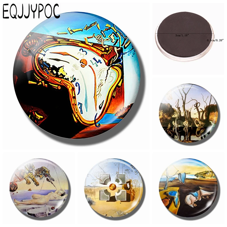 Сальвадор Дали Мягкая часы 30 мм магнит на холодильник взрыв Книги по искусству Стекло купол магнитный холодильник, наклейки Примечание дер...