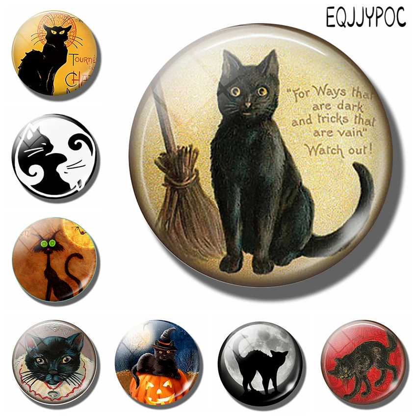 1 p любителей кошек 30 мм магнит на холодильник Черный кот с метлой ведьма Цитата стекло кабошон магнитная наклейка на холодильник Примечание...