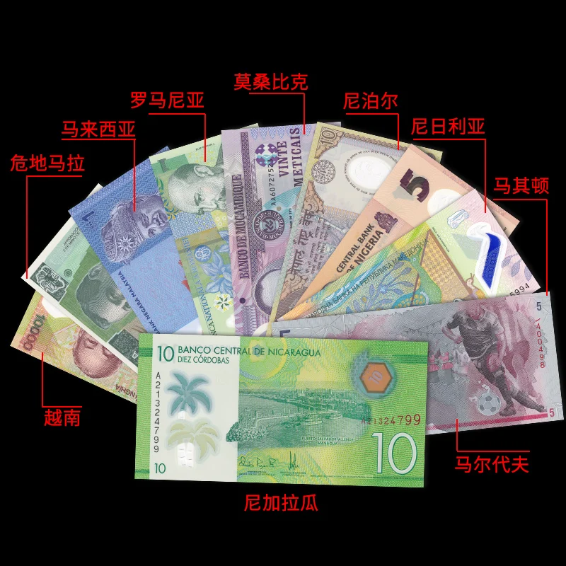 Бесплатная доставка! Лот 10 шт полимерные банкноты набор из 10 разных стран, UNC, подарок, коллекция, оригинальные банкноты