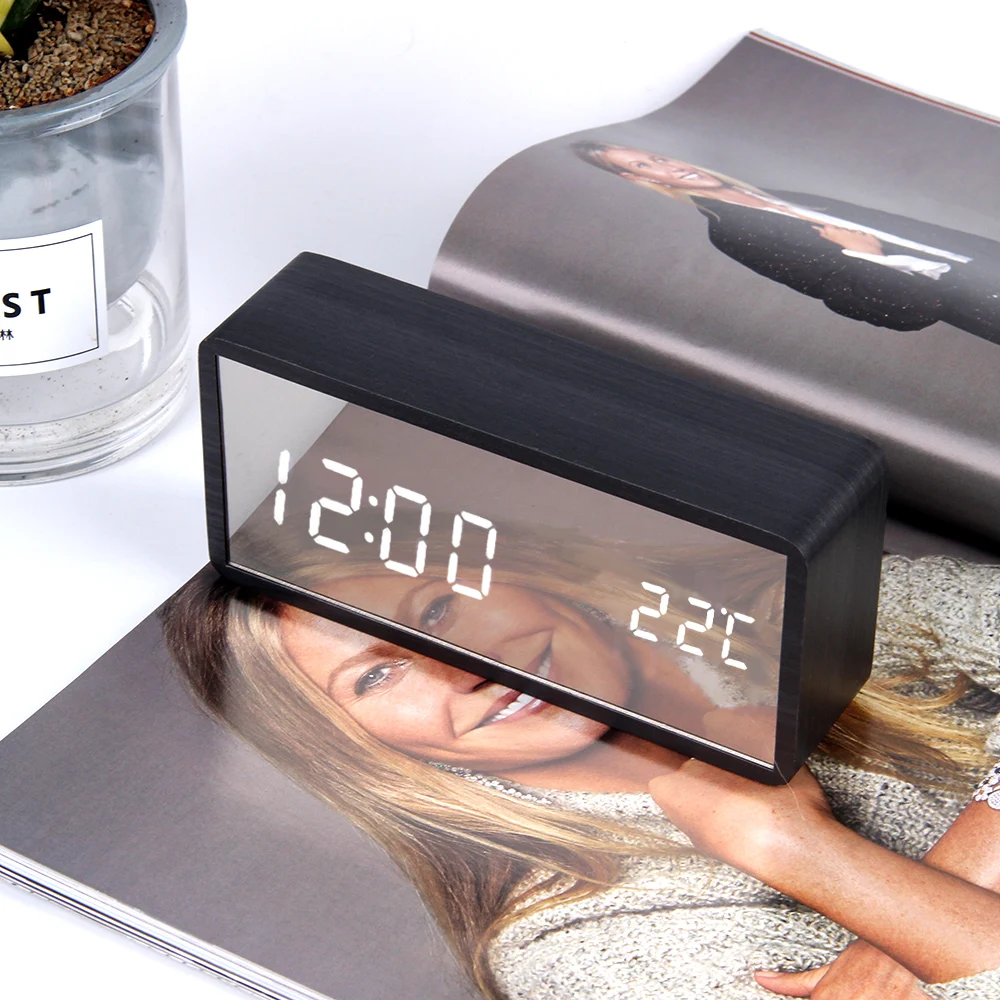 Светодиодный Деревянный Будильник, зеркальные настольные часы, часы с голосовым управлением, цифровые деревянные часы Despertador, электронные настольные часы с аккумулятором, цифровые часы