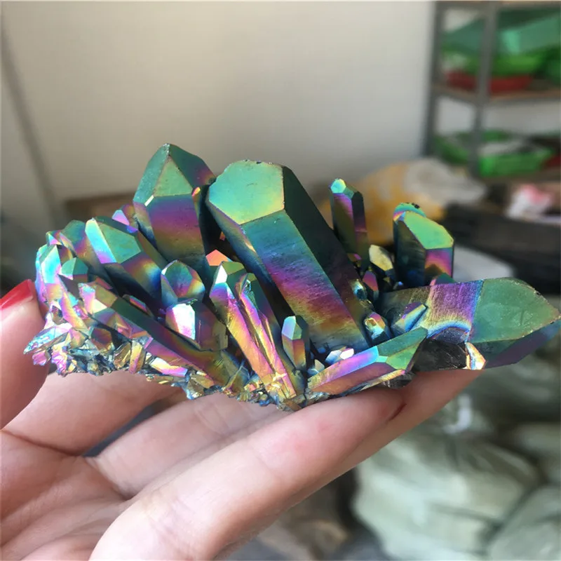 120 г натуральный красивый гальванический гроздь кристаллов кварца образец