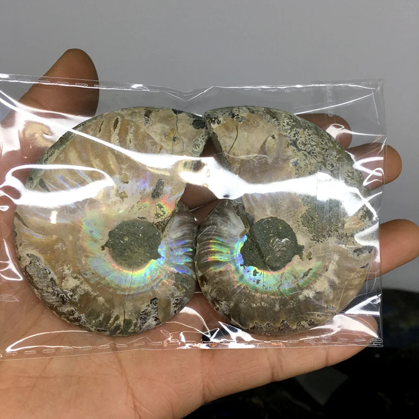 2 шт. натуральный Радужный корпус аммония Fossil slice Madagascar monoite fossil mineral specimen