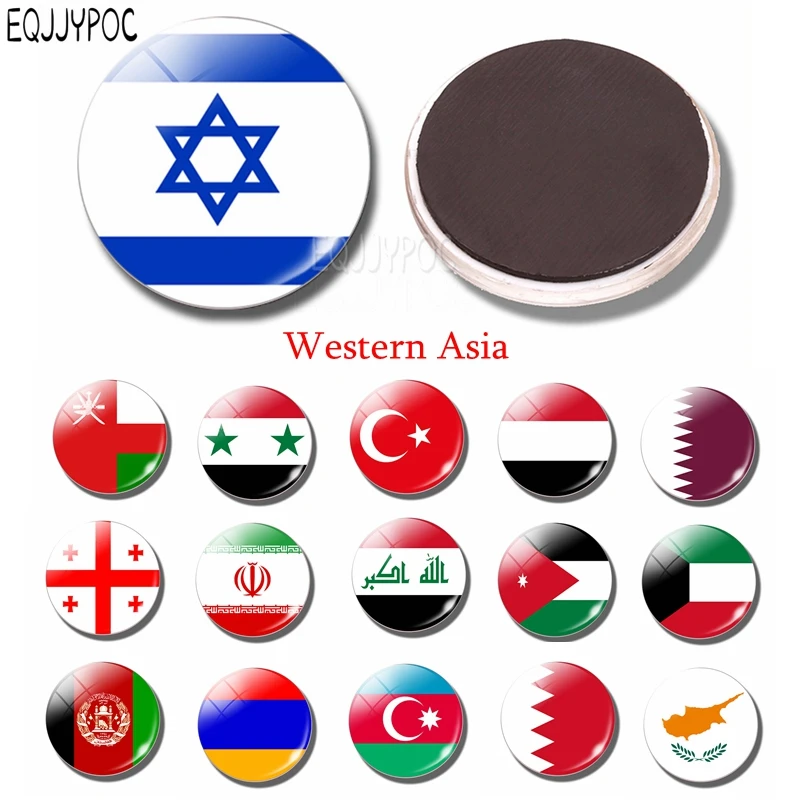 Магнитный стеклянный купольный холодильник, наклейки на холодильник, 30 мм, с флагом Израиля, Западной Азии, Джордана, Омана, Турции, РА, магнит на холодильник, кухонный Декор
