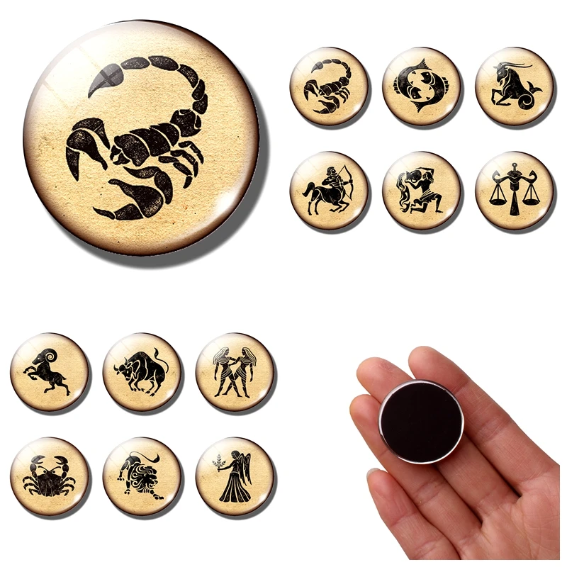 Знак зодиака Стекло магниты на холодильник Стрелец Козерог Водолей Лев Дева весы Скорпион рыбы 30 мм круглый холодильник Стикеры