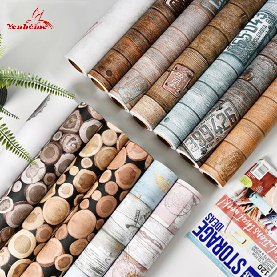 Декор комнаты водонепроницаемые самоклеющиеся обои для детской комнаты спальни гостиной клейкие пленки винтажные плакат стена «под дерев...