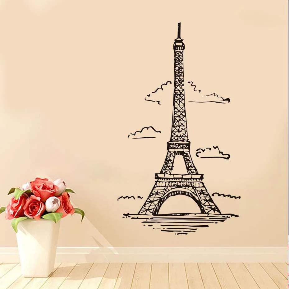 Европейский стиль белые облака Париж Эйфелева башня настенные съемные виниловые наклейки на стену для гостиной украшения дома