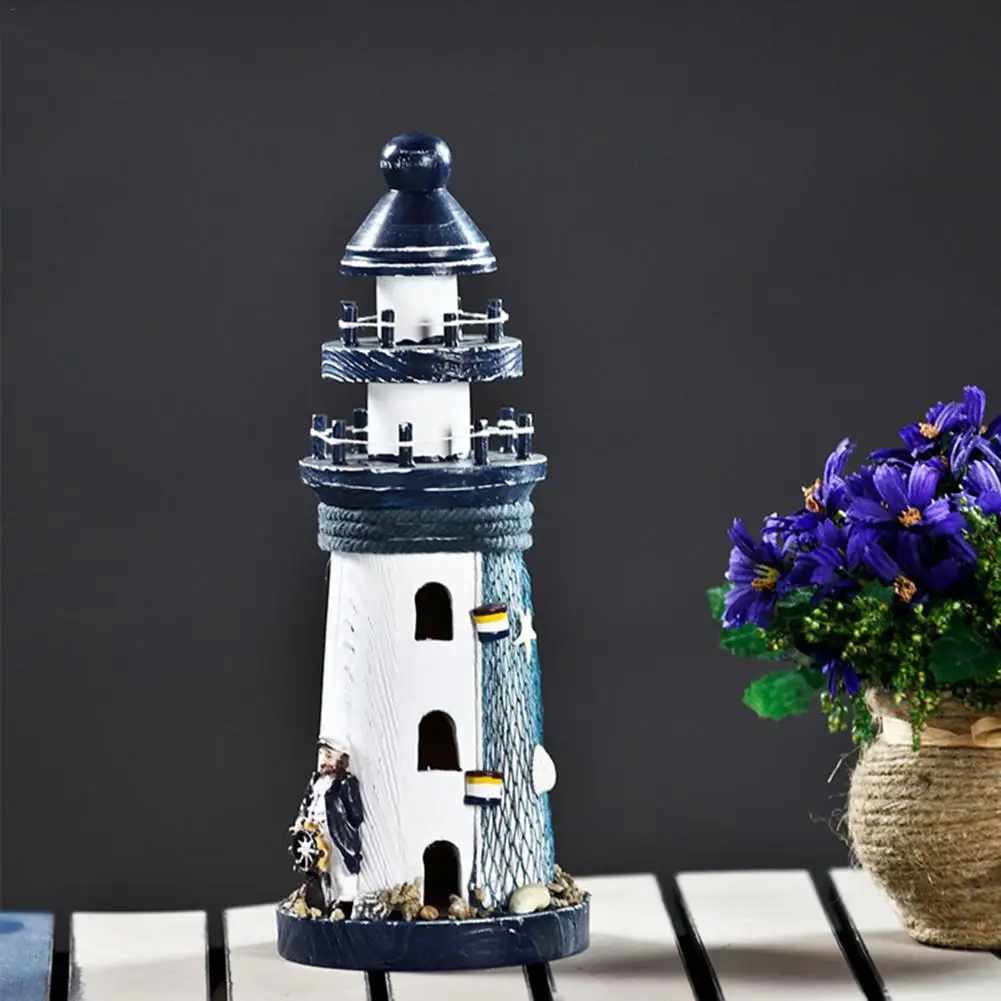 25 см Деревянный Маяк ручная роспись Маяк железная модель подсвечник морской рыбной сети оболочки буй Декор модель башня