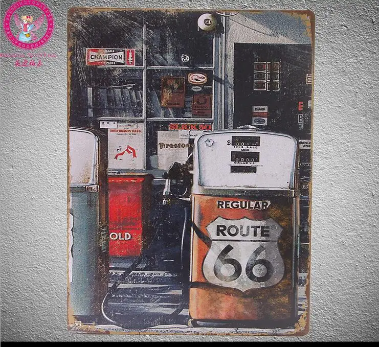 Большой размер Олово Признаки ROUTE 66 Газа дизайн стены Стикеры большой металлический живопись Олово Признаки живопись большая стена Стикеры...