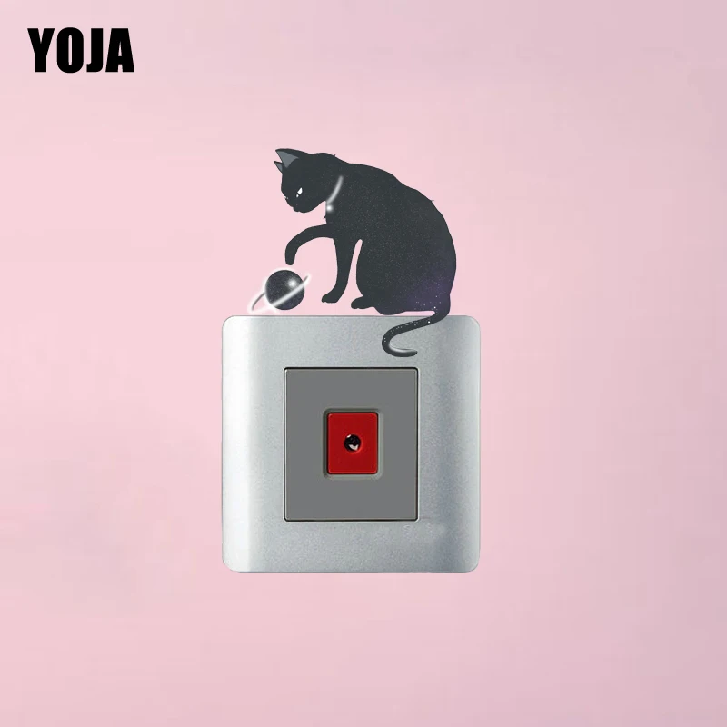 YOJA кот играет спутниковый домашний декор переключатель наклейки декор виниловая наклейка на стену 8SS0003