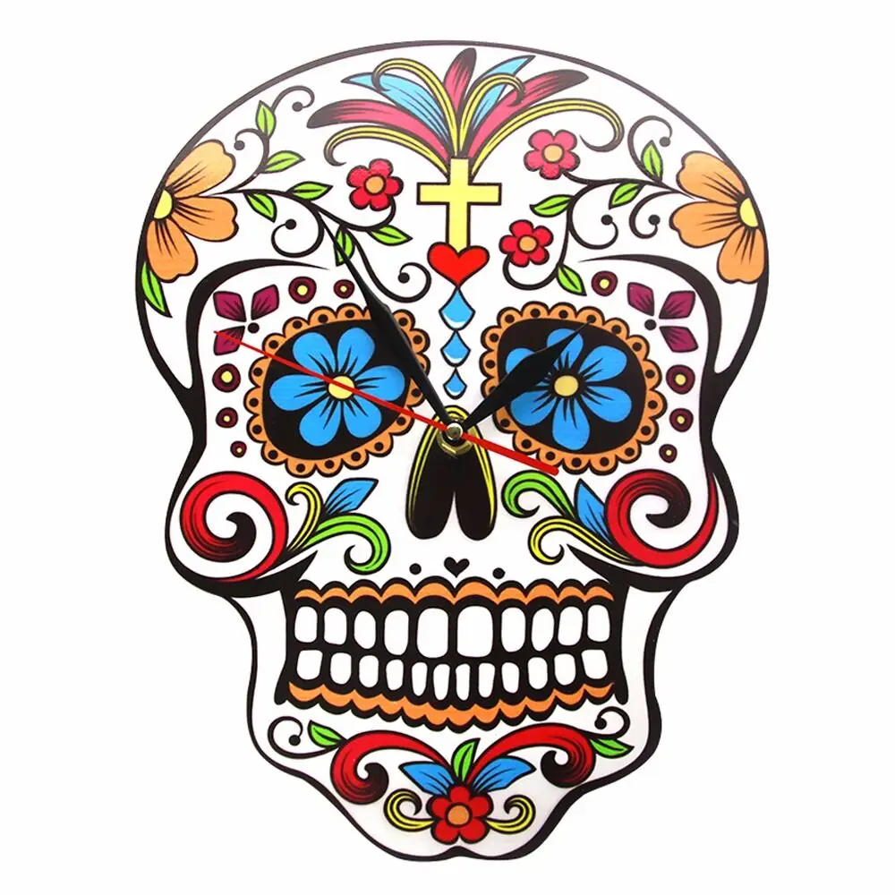 Мексиканская Dia De Los Muertos День мертвых настенные часы Цветочный Череп современные настенные часы конфеты сахарный череп Хэллоуин Декор стен