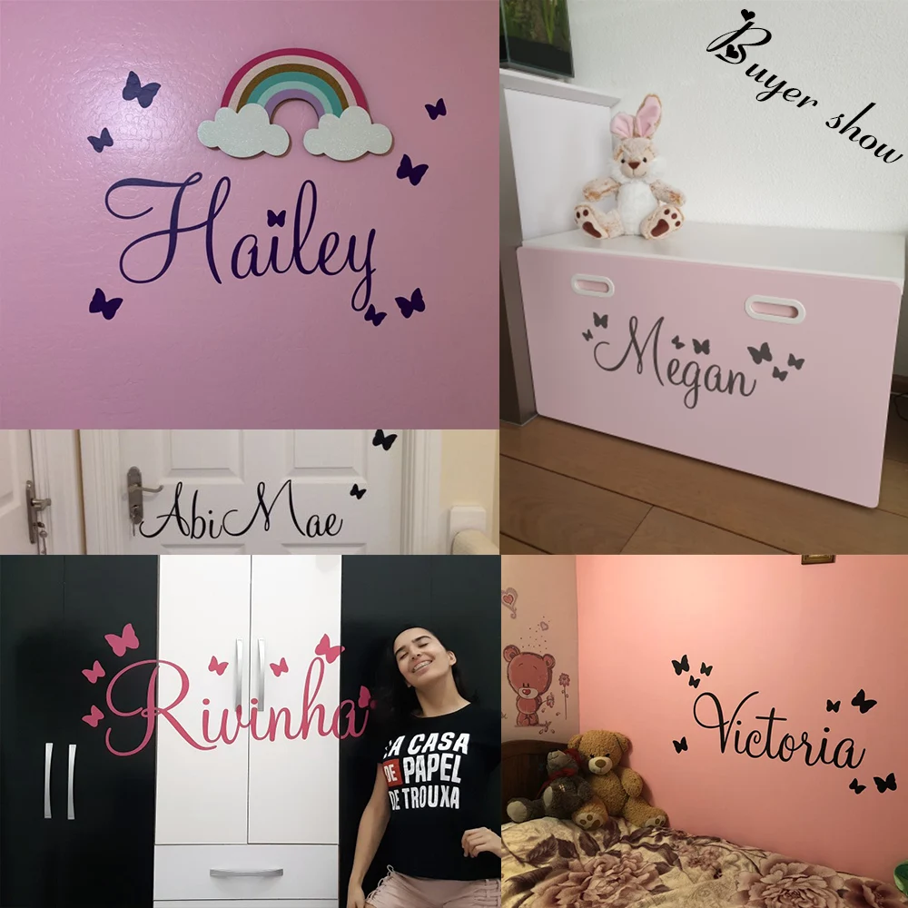 20 стилей персонализированные наклейки с именем Kawaii наклейки на стену виниловые наклейки для детской комнаты украшения спальни обои
