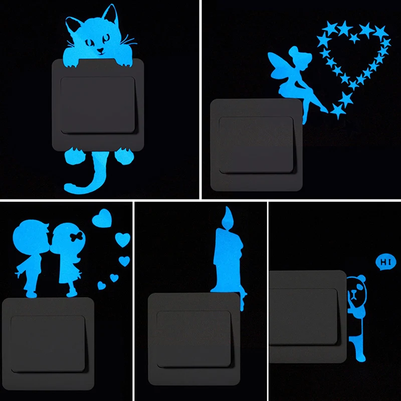 Милые животные переключатель наклейки Светящиеся в темноте наклейки на стену s Синий световой Декор наклейки s домашний декор Детская комна...