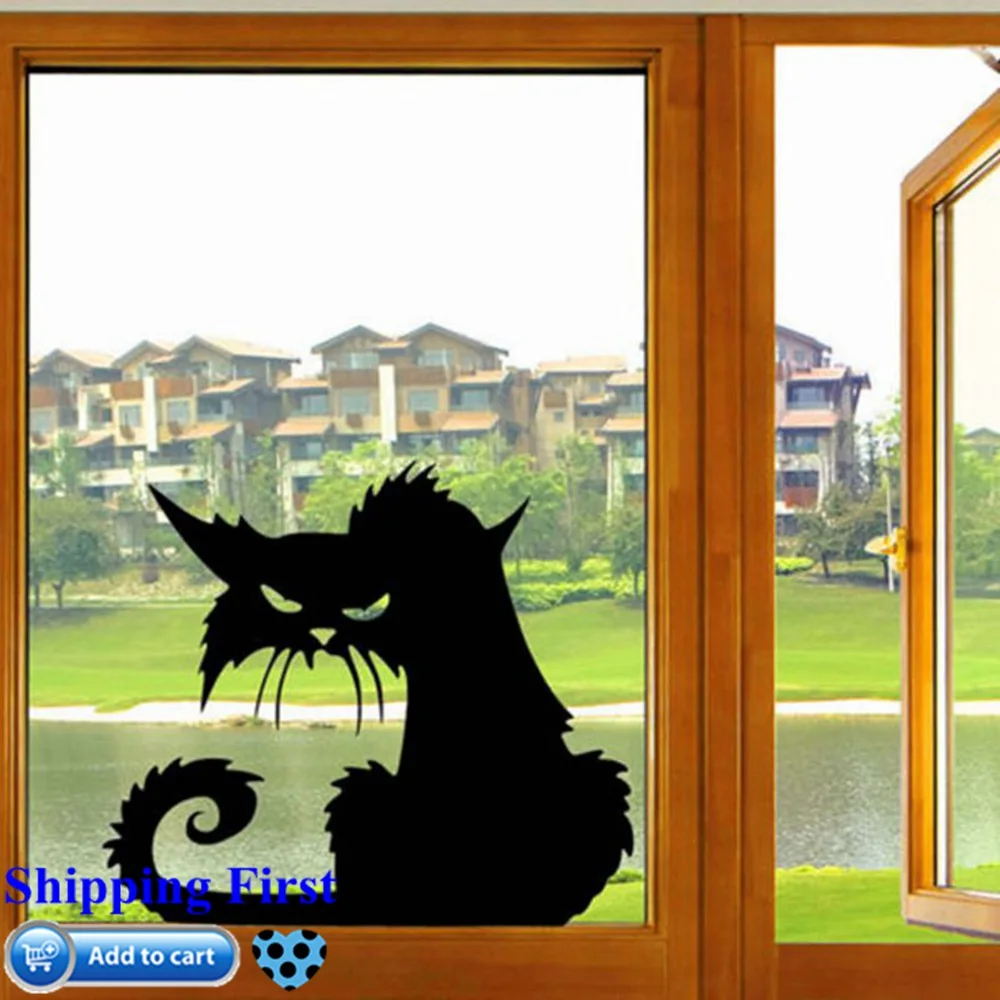 1 шт. DIY Черный Забавный сердитый кот съемный стикер автомобильный магазин витрина окно ноутбук Хэллоуин виниловая наклейка домашние декоративные пленки