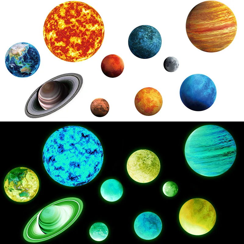 Светящиеся Настенные наклейки с планетой, солнечная система, земля, солнце, наклейки с Луной для детской комнаты, украшение для дома, космические настенные наклейки, светящиеся