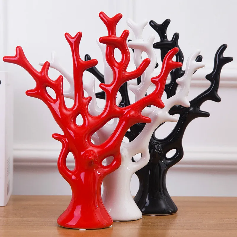 Фарфоровые украшения в форме кораллового дерева для домашнего декора, керамические статуэтки для шкафа Фортуны, 5 видов цветов на выбор