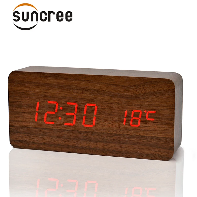 Suncree под старину Стиль черный, белый цвет ночь светящиеся деревянные часы краткое книги по искусству часы Temp + дата время reloj despertador для офис