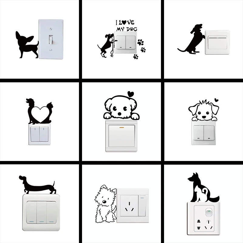 Милый мультяшный стикер с переключателем для собаки и щенка, креативные наклейки на стену с животными для детских комнат, детская спальня, гостиная, домашний декор