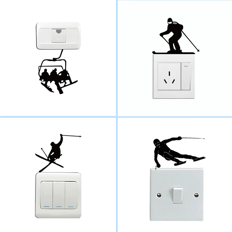 Забавные горнолыжный подъемник ездить на горы винил переключатель Стикеры модные спортивные настенные домашний декор SW0183