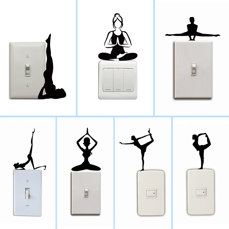 Мода Йога Медитация переключатель Стикеры Творческий мультфильм Йога силуэт стены стикеры s для спальни гостиной домашний декор SW0203