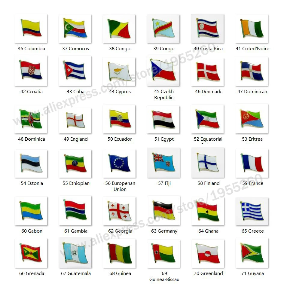 Национальный флаг Металлический Нагрудный штырь Флаг значок по всему миру Коламбия Куба Чешский Англия Египет Финляндия Франция Германия