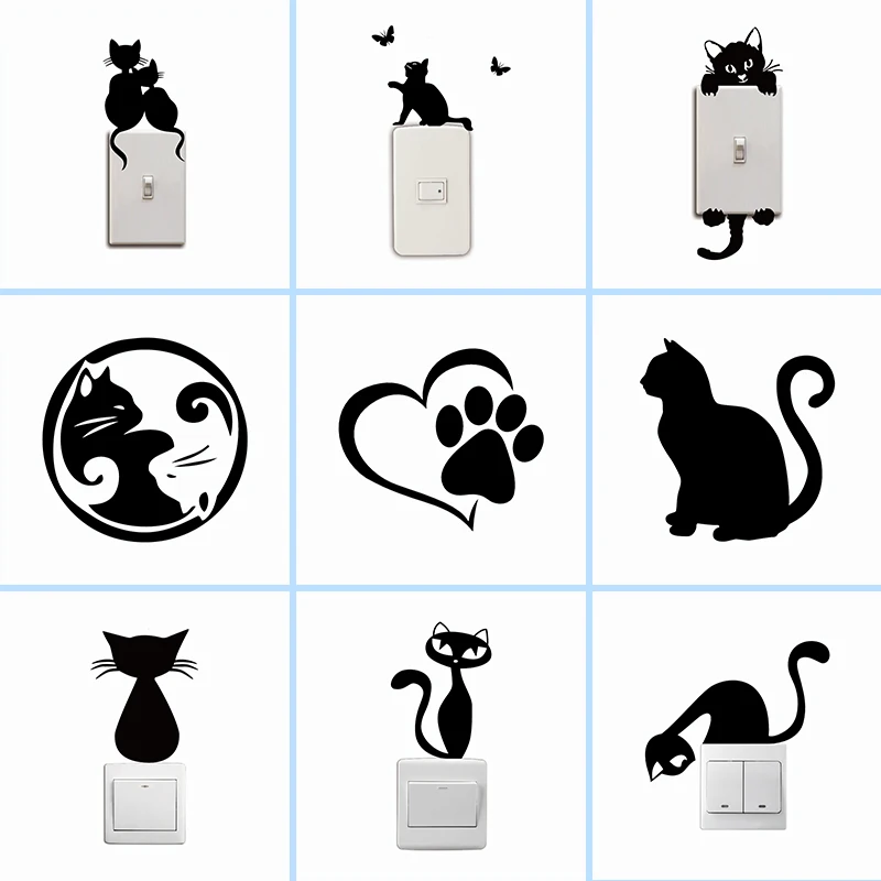 Виниловые Стикеры для выключателя с изображением котенка из мультфильма, Милого Животного, силуэт, настенные Стикеры для детских комнат, детской спальни, гостиной, домашнего декора