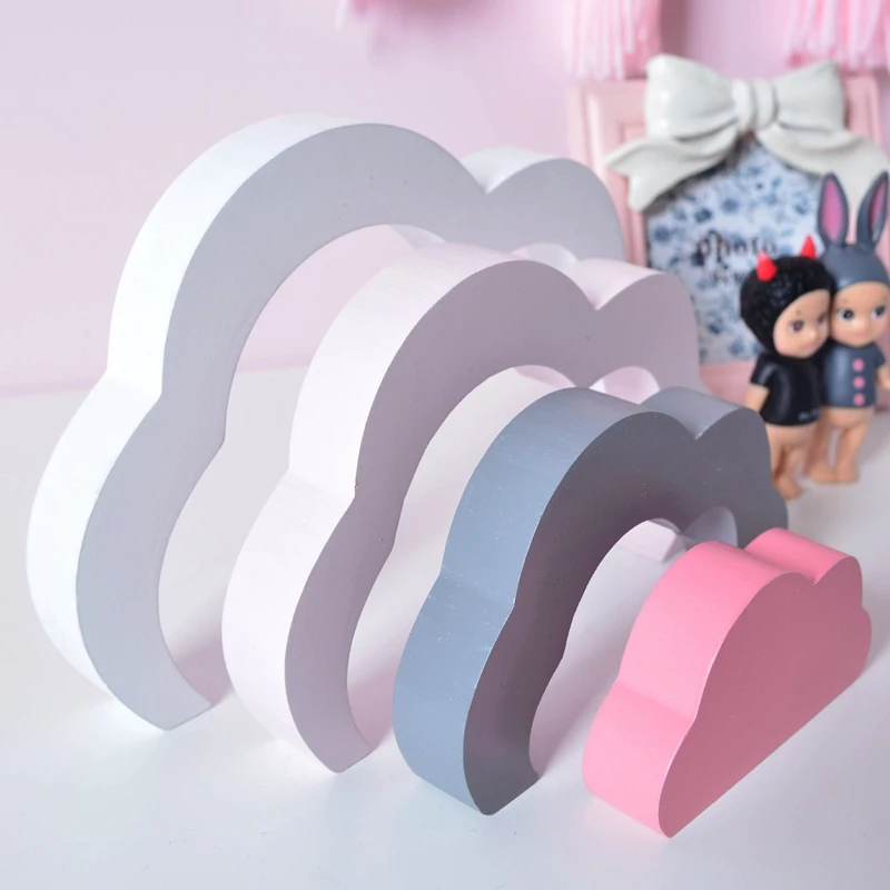 Дерево облако форма развивающие фигурки облако здание деревянный Радуга блок ремесло дети Nordic Настенная Наклейка для детской комнаты дома ...