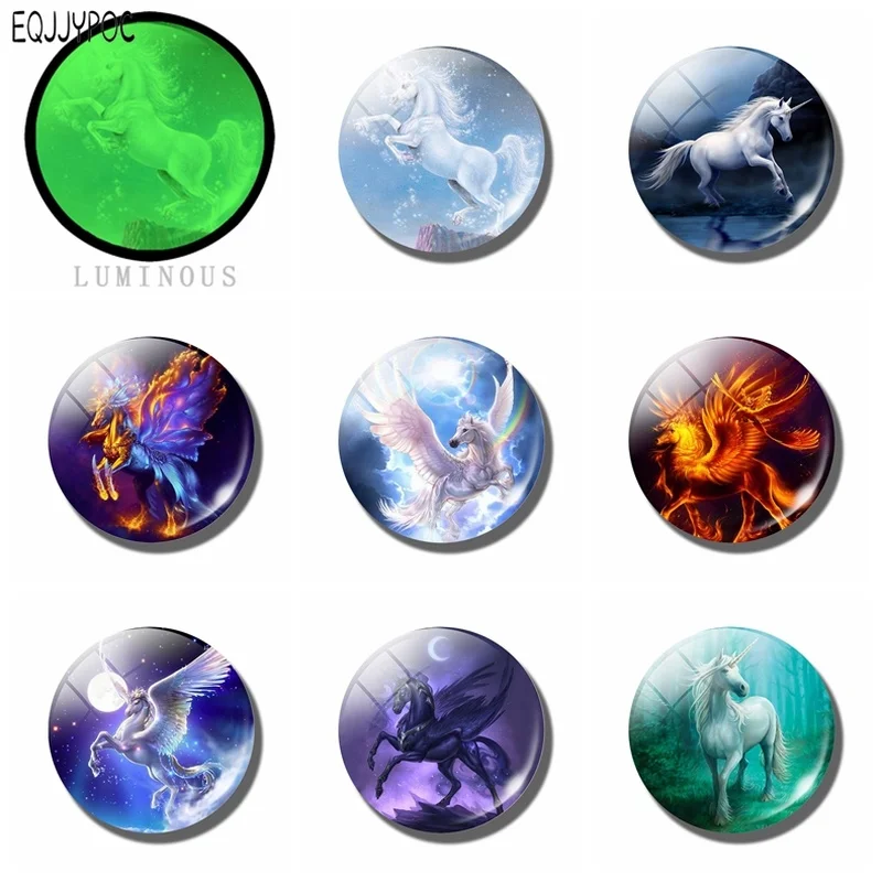 Светящийся Единорог 30 мм стеклянный магнит на холодильник магниты на холодильник животные светящиеся ночью круглые магнитные наклейки домашний декор