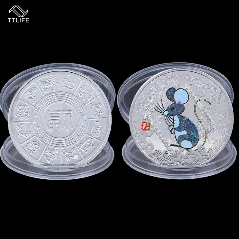 TTLIFE, 1 шт., 2020 год, монета с изображением крысы, сувенирная монета с китайским зодиаком, посеребренные монеты иностранных валют для украшения ...