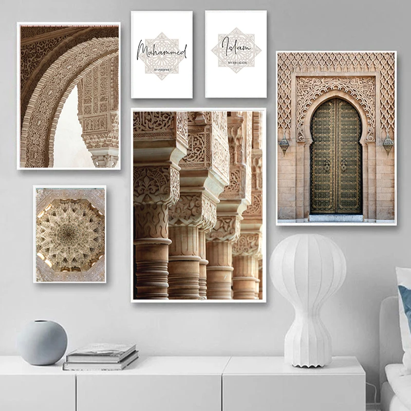 Исламский плакат с архитектурой Альгамбра Хассан мечеть стены искусства холст печать Бог Мухамед живопись современный минималистский домашний декор