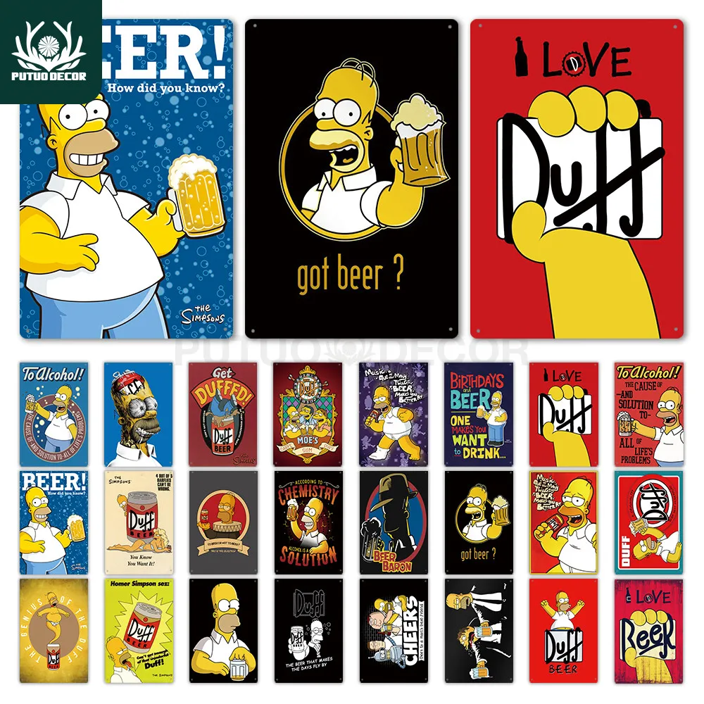 Симпсон металлический плакат Duff пивной металлический знак Забавный знак Настенный декор для бара паба клуба человек пещера декоративная т...